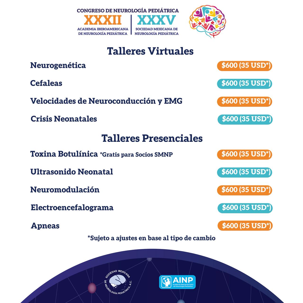 ● Nuevos socios AINP: $3,000MXN / 172USD* + un taller virtual. Enviar taller deseado a contacto@neurologiapediatrica.mx